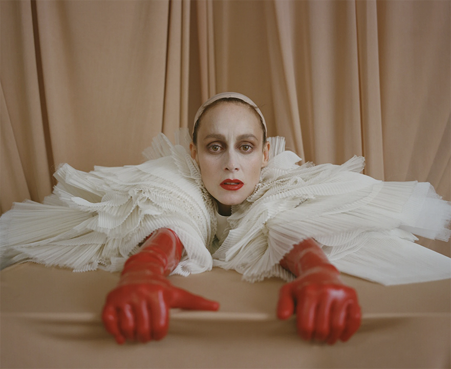 SURREAL BEAUTY ART DIRECTION M RASMUSSEN PHOTO MARY ROZZI STYLE SHIV LYON SET DESIGN NATALIE SILVER MODEL MOUNA FADIGA PRODUCTION GILLIAN DOYLE MAKE UP GLORIA NOTO HAIR MATT SHAIR